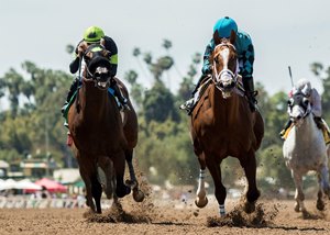 The race was marred by the fatal breakdown of Hal and Patti Earnhardt's homebred Ten Blessings, who was stalking the pace in fourth midway through the turn before he was pulled up by jockey Drayden Van Dyke. The 5-year-old son of Smart Strike, out of the two-time champion Indian Blessing, fractured both sesamoids in his left front leg and was euthanized after the race, according to the stewards at Santa Anita.