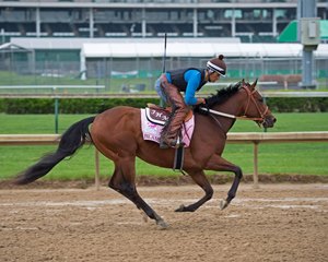 The bay filly, trained by Joel Marr, worked a half-mile April 28 in :48 2/5 in preparation for the nine-furlong Oaks. She appeared "off" while being asked to jog in the shedrow Sunday morning and was X-rayed soon afterward.