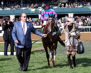 Finley'sluckycharm has never been beaten in eight starts within the state of Kentucky, with her most recent score coming when she prevailed in a four-horse blanket finish in the April 7 Madison Stakes (G1) at Keeneland. Aside from the obvious joy of the Madison being her first career top-level victory, Calhoun relished seeing owner Carl Moore's mare leave no doubt she was among the elite in her division after ending her 2017 campaign with a rare off-the-board outing when ninth in the Breeders' Cup Filly & Mare Sprint (G1).