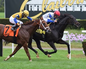 Final time for the 1 1/8-mile test on the Belmont "good" inner turf was 1:48.35. Hi Happy took second followed by a hard-charging Inspector Lynley who angled five wide in the stretch and kicked home to take show honors. Revved Up, Night Prowler, and Aquaphobia completed the order of finish. Blacktype is the first horse to win back to back reprisals of the Knickerbocker since Boisterous (2011-12).