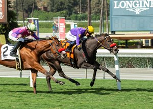 Under Mario Gutierrez in the Surfer Girl, Lakerball broke sharply and quickly gained the lead. She remained the pacesetter throughout the one-mile race and just held off a late challenge by Lady Prancealot. The final time was 1:35.23.