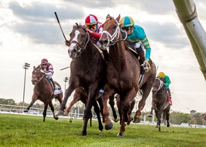 Set down for a drive by jockey Tyler Gaffalione, Markitoff continued to duel as the pair approached the finish. The two made brief contact in the final sixteenth but did not slow their pace. Bricks and Mortar was declared the winner in a photo finish. Final time for the 1 1/8 mile test was 1:50.44 over turf rated firm.