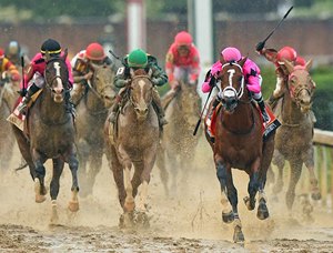 Ridden by Luis Saez, Maximum Security set a fast :22.31 opening quarter in the first leg of the Triple Crown and reached the wire 1 3/4 lengths ahead of Country House.